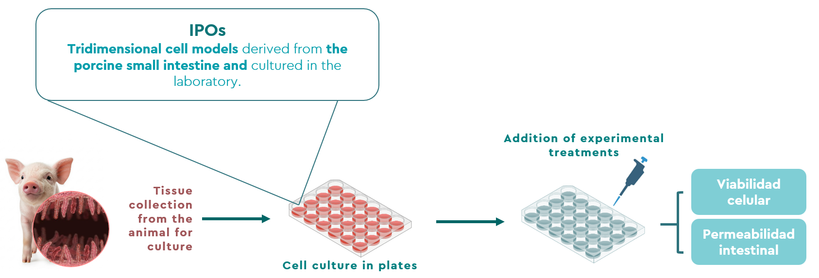 Cell viability is a parameter that indicates the percentage of “alive”, biologically active cells, in a sample. Therefore, it serves as a key indicator of intestinal health and nutrient absorption capacity. A higher number of functional intestinal cells contributes to greater productive efficiency, supporting optimal growth and development. To assess intestinal cell viability, mitochondrial activity is analyzed, as it defines cell vitality and, consequently, whether the cell thrives or deteriorates.