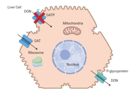 Dans le cas des trichothécènes, comme la DON, il a été observé que leur transport dans les cellules s’effectue principalement par transport facilité. Dans les cellules fortement affectées par la présence de DON, telles que les cellules hépatiques et intestinales, l’entrée du DON se produit principalement par le biais de protéines de canal, telles que la famille des polypeptides transporteurs d’anions organiques (OATP). Dans ce scénario, la silymarine agit comme un inhibiteur de la protéine du canal OATP, empêchant l’entrée du DON dans les cellules hépatiques et intestinales, protégeant ainsi les cellules, des effets néfastes de cette mycotoxine (Xiaoming et al., 2017).