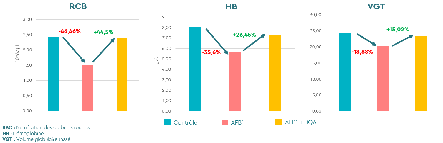 Figure 6. Biomarqueurs hématologiques (RBC, HB et VGT).