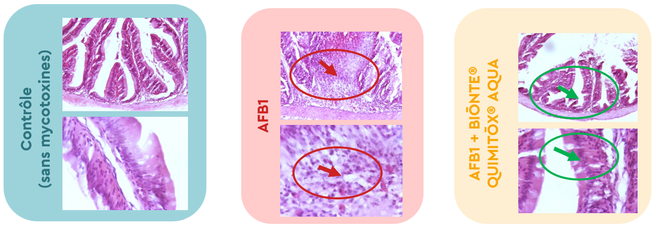 BIŌNTE® QUIMITŌX® AQUA a neutralisé les lésions histopathologiques provoquées par l'AFB1.