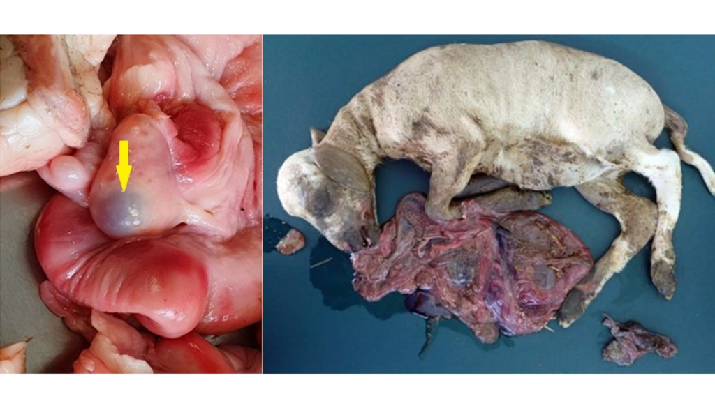 Otros efectos también documentados son el aborto (Imagen 6) y un aumento de la mortalidad y los prolapsos (Imagen 7) (McKenzie et al., 1981; Van Halderen et al., 1988; Felipe Penagos-Tabares et al., 2024).