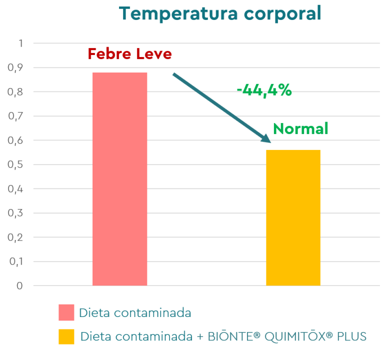 Figura 2. Temperatura corporal em ovelhas alimentadas com e sem BIŌNTE® QUIMITŌX® PLUS.