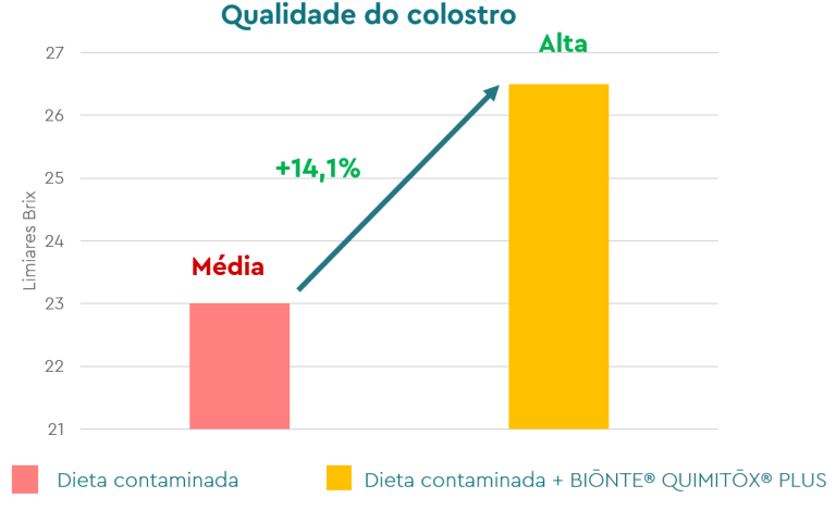 Figura 5. Parâmetro de qualidade do colostro em ovelhas alimentadas com e sem BIŌNTE® QUIMITŌX® PLUS.